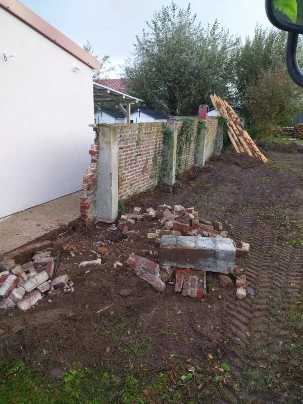 Avant de poser la nouvelle clôture, les équipes de TCR ont procédé à la déconstruction de l’ancien mur en briques, qui servait jusque-là de séparation entre la propriété et l’espace public ou voisin :